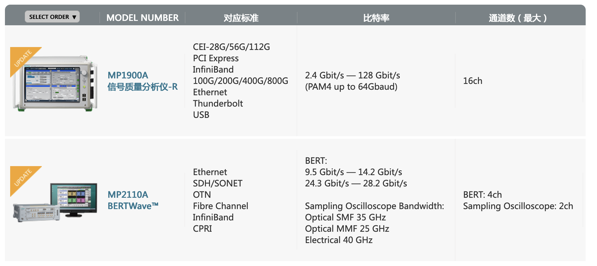 安立公司是世界領(lǐng)先的誤碼率測(cè)試測(cè)量產(chǎn)品供應(yīng)商,支持?jǐn)?shù)率100Mbit/s到64.2Gbit/s的誤碼率測(cè)試。